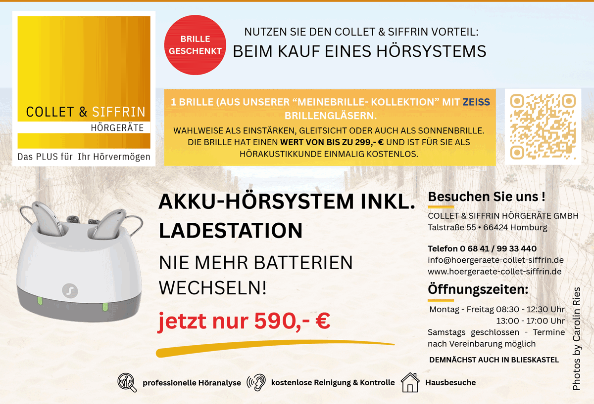 Mein Name ist Yvonne Collet und ich bin Teilhaberin und Hörakustikmeisterin von Collet & Siffrin Hörgeräte. Ich habe es mir zur Aufgabe gemacht, Menschen zu helfen, die Freude am Hören zurückzugewinnen.